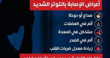 وأوضح بيان صادر عن الوزارة أن أعراض الإصابة بـ التوتر الشديد قد تظهر في صورة صداع أو دوخة، وآلام في العضلات، ومشاكل في المعدة، إلى جانب الشعور بألم في الصدر وزيادة معدل ضربات القلب، مشيرة إلى أن هذه العلامات تستوجب الانتباه وعدم إهمالها، خاصة إذا تكررت بصورة ملحوظة.
