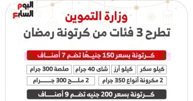 طرح 3 فئات من كرتونة رمضان بمنافذ وزارة التموين.. إنفو جراف – اليوم السابع