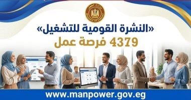 أعلن وزير العمل محمد جبران، اليوم الثلاثاء، عن إصدار نشرة التوظيف نصف الشهرية، والتي تتضمن توفير 4379 فرصة عمل جديدة بالتعاون مع 37 شركة من شركات القطاع الخاص، موزعة على 12 محافظة، مع إتاحة التقديم خل...
