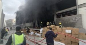 يستكمل رجال الإدارة العامة للحماية المدنية محاولات السيطرة على حريق اندلع داخل مصنع ملابس فى المنطقة الصناعية بمدينة 6 أكتوبر، وسط تواجد سيارات الإطفاء والإسعاف بمحيط الحريق لنقل أى مصابين جراء الأدخن...
