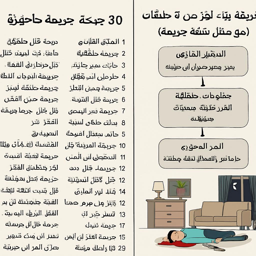 هتلاقي هنا 30 حبكة جريمة جاهزة تقدر تبدأ منها فورًا، وبعدها طريقة بسيطة تبني بيها لغز قوي من 3 طبقات: